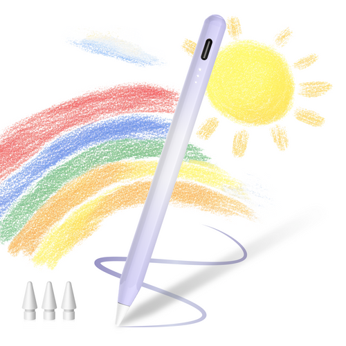 MEKO Kinder Stift für iPad 15 Min Schnellladung Pencil mit Magnetischer Haftung, Palm Rejection und Neigungssensitivität für iPad 6-11 Mini 5-6 Air M2/M3/3-5 Pro M4/13''/12,9''/11"-Farbverlauf lila