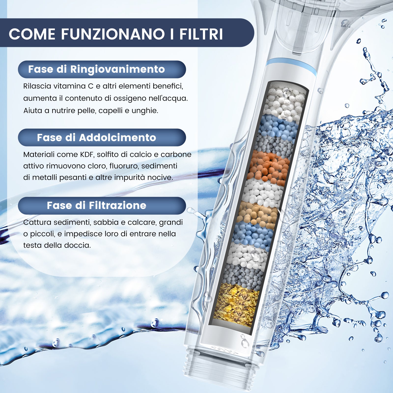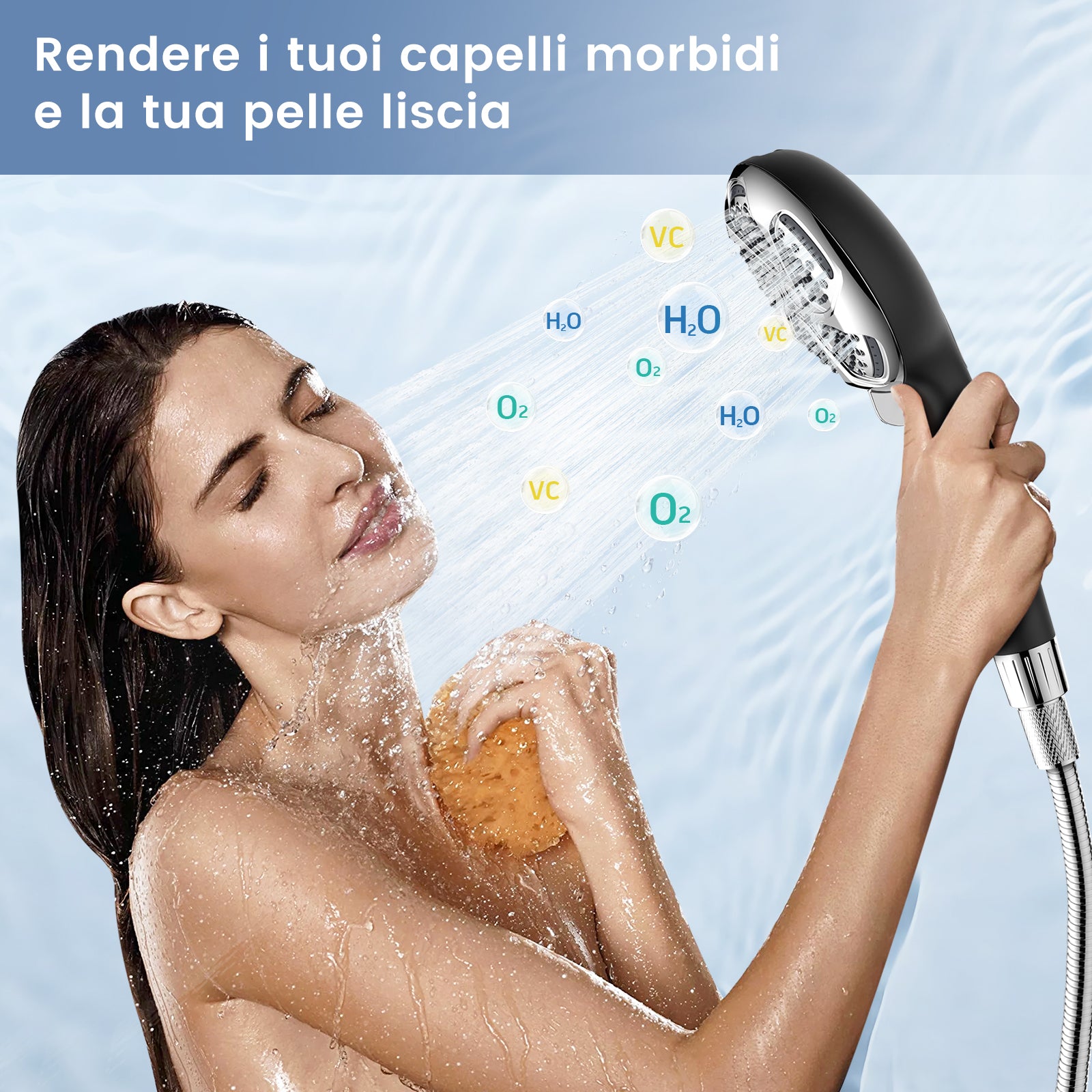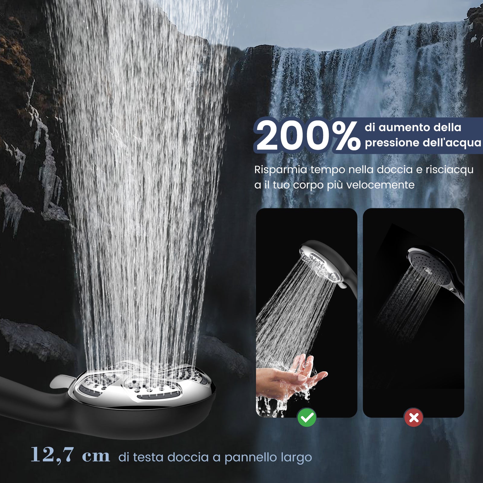 - Alta Presión y Ahorro de Agua en Uno: El cabezal de ducha filtrado tiene un diseño interno único que proporciona una experiencia de lluvia completa incluso con baja presión, eliminando residuos de champú y jabón sin irritar la piel. El flujo potente reduce un 30% el consumo de agua y el tiempo de ducha, ¡adiós a los problemas de los cabezales tradicionales