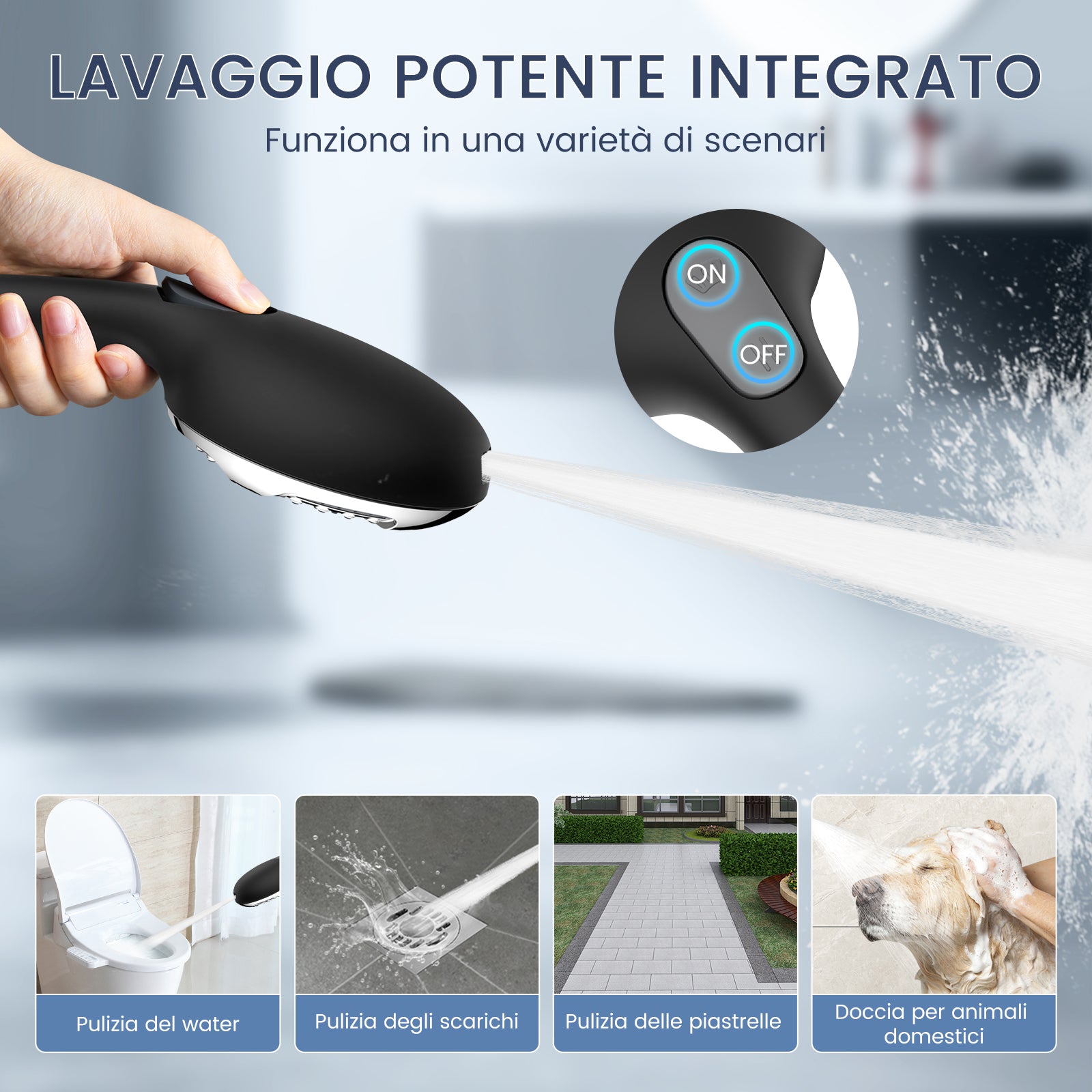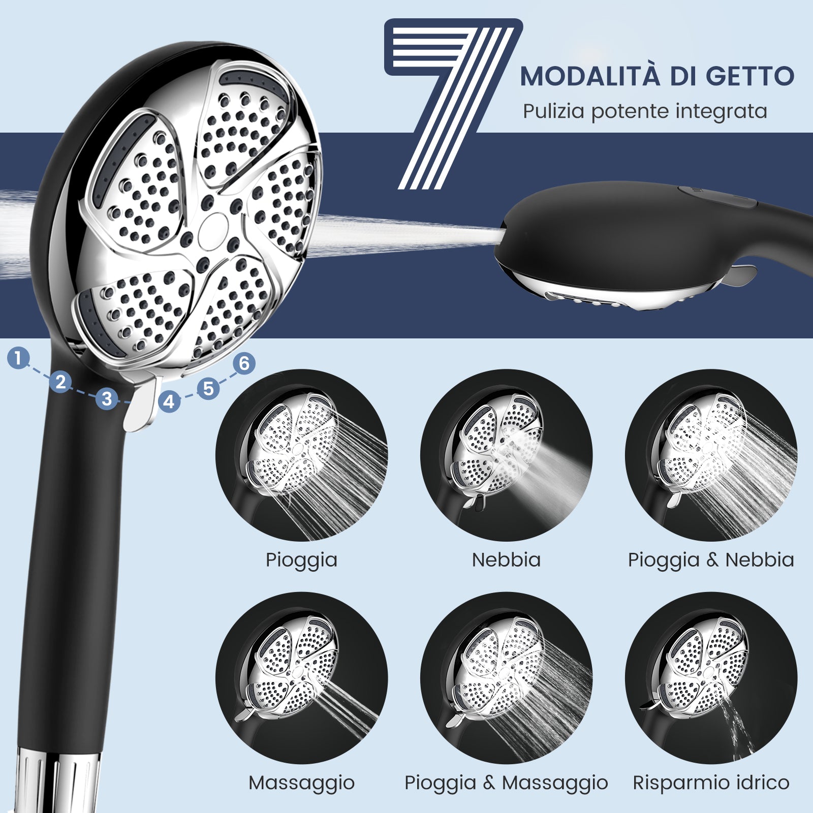 - 6 Modos de Ducha + Función de Limpieza Potente: El Ducha con Filtro ofrece 7 modos intercambiables (lluvia, masaje, niebla, lluvia+masaje, lluvia+niebla, ahorro de agua y modo de limpieza potente), satisfaciendo todas las necesidades familiares con un solo botón. Presiona el botón en la parte trasera del cabezal para activar el modo de limpieza potente, que limpia rápidamente áreas grandes y elimina la suciedad más resistente. ¡Limpiar la ducha nunca fue tan rápido y fácil