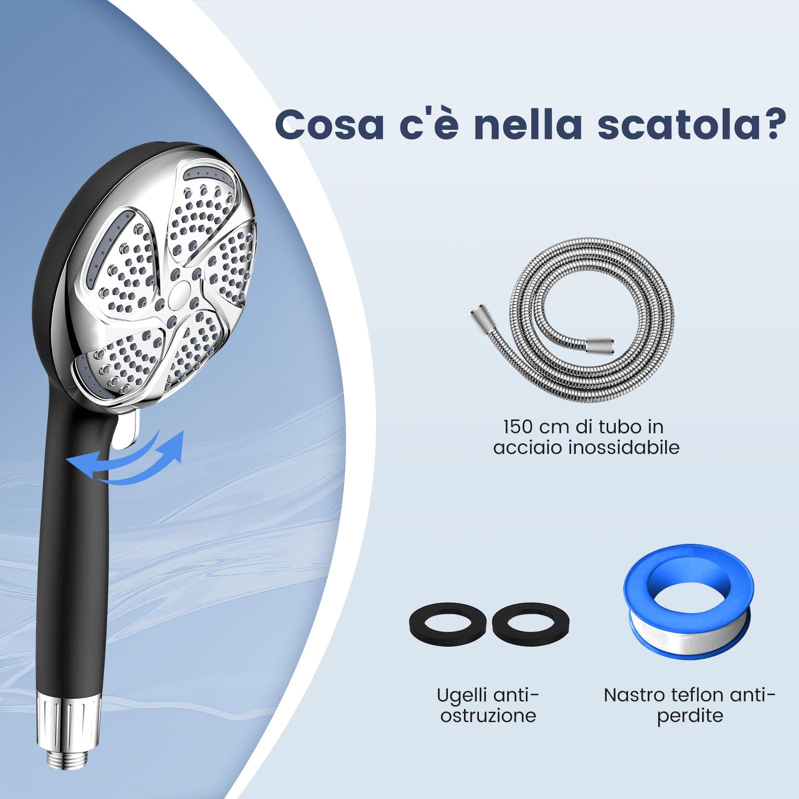 - Instalación Sencilla: El cabezal ducha con filtro se instala rápidamente sin herramientas. Simplemente desenrosque la manguera vieja, monte los nuevos componentes y cuelgue el cabezal de ducha - tres pasos para ahorrar tiempo y esfuerzo. El kit incluye: un cabezal de ducha filtrante manual, una manguera de acero inoxidable de 1.5 metros, 2 juntas de repuesto, cinta de teflón y manual de instrucciones. Si tiene alguna duda o insatisfacción, nuestro equipo de servicio al cliente está siempre disponible para ofrecerle una solución satisfactori